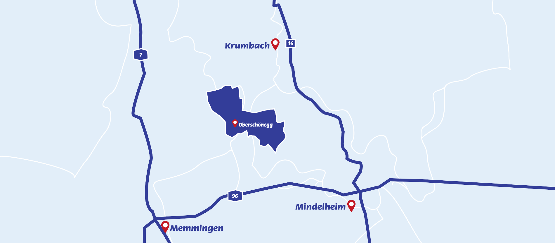 Seit 1920 ist Ehrmann in Oberschönegg zu Hause. Ein ausgezeichneter Ort, an dem auch Sie Ihre dauerhafte berufliche und private Heimat finden können. Denn unser Hauptsitz liegt mitten in der Wirtschaftsregion Unterallgäu – im Städtedreieck Memmingen, Mindelheim und Krumbach. Die Region bietet dabei jede Menge Lebensqualität: Herrliche Landschaften, ein reichhaltiges Kultur- und Freizeitangebot machen das Unterallgäu lebens- und liebenswert. Zudem ist es jeweils nur etwas mehr als eine Stunde in die Alpen, nach München oder an den Bodensee.